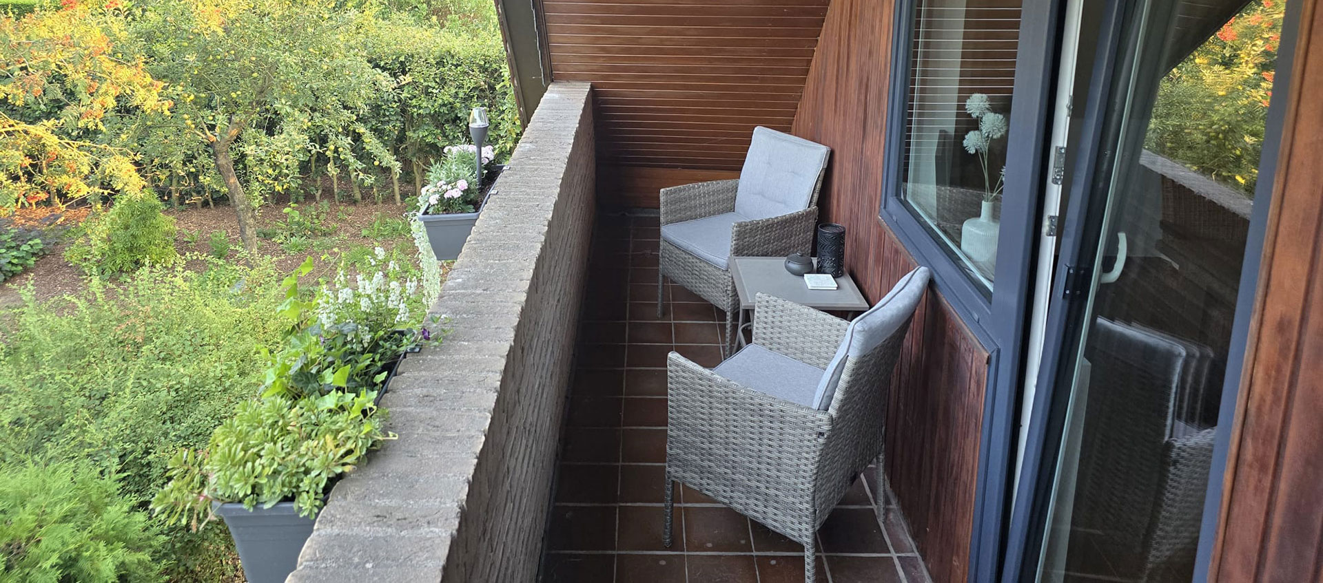 Ein Highlight der Ferienwohnung ist der Balkon, von dem aus Sie die frische Luft und die Natur genießen können, da sich die Wohnung in unmittelbarer Nähe eines Waldes befindet. Hier können Sie